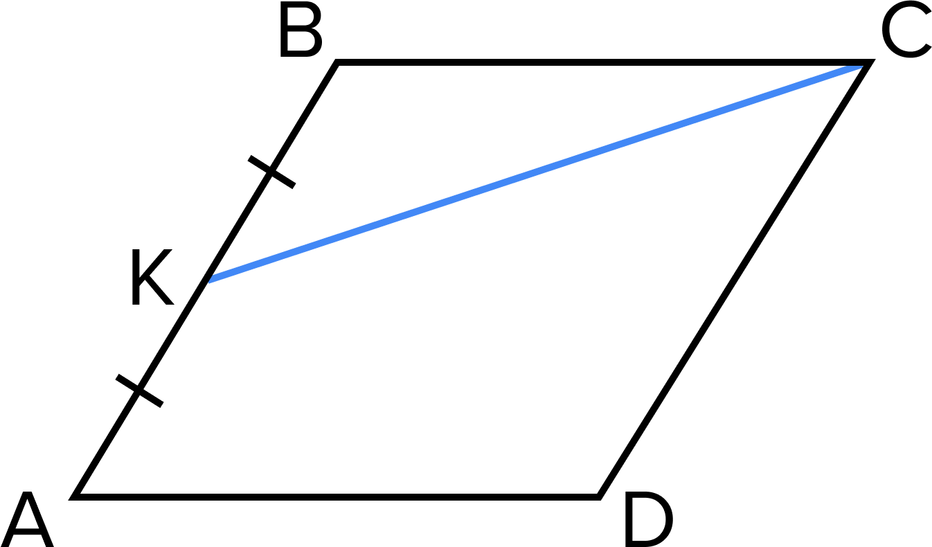 Площадь параллелограмма ABCD равна 116. Точка К — середина стороны AB. Найдите площадь треугольника CBК.