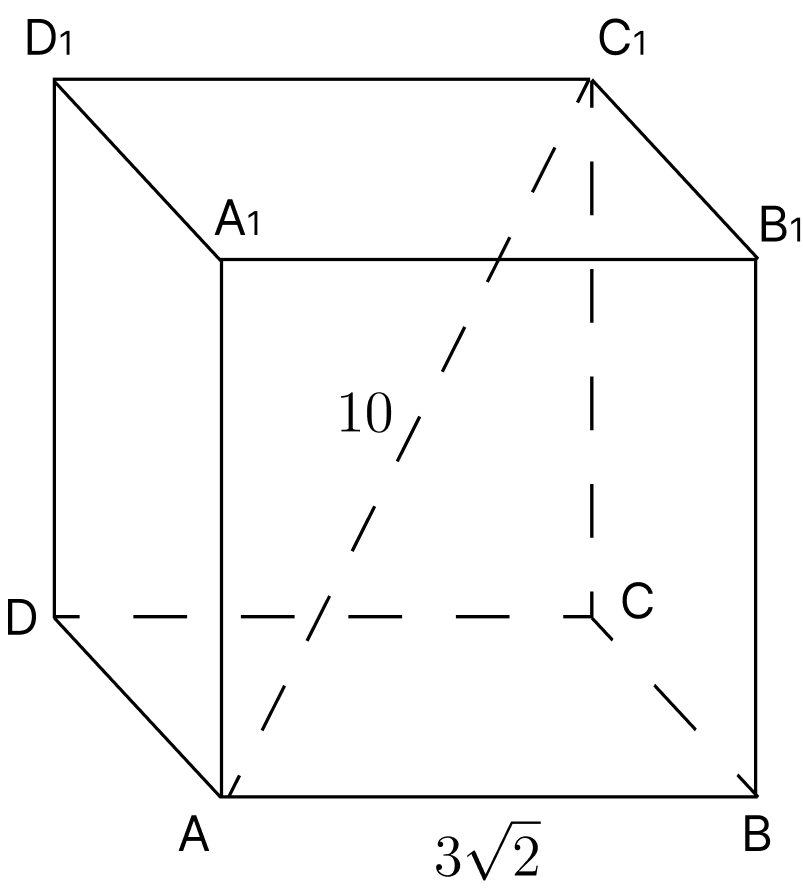 В правильной четырехугольной призме ABCDA1B1C1D1 известно, что AB=3√2, а диагональ AC1 равна 10. Найдите высоту призмы.